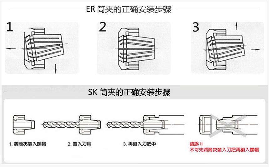 筒夾是一種夾持刀具或工件的鎖緊裝置,通常用在鉆銑床和加工中心上,主要用來夾持刀具。筒夾是利用彈簧的彈性變形來夾緊刀具。夾持比較簡單、方便,對刀具柄部精度要求不高。筒夾是刀柄夾持刀具的一種配件、適合高速切削、高效加工中的應(yīng)用。剛性較好,夾緊要靠螺母鎖緊。