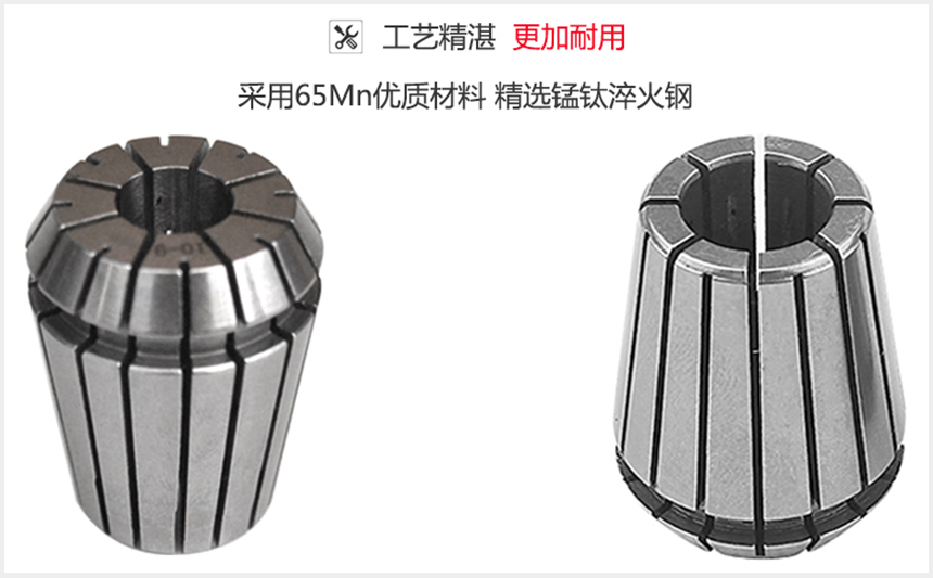 er20夾頭筒夾系列選用優良材質65CrMnTi,經熱處理后有較好的彈性和耐磨性,性能穩定。夾緊力大,精度高,夾持穩定性好。批發選生產廠家菁華數控,品質好,價格優,歡迎定購!