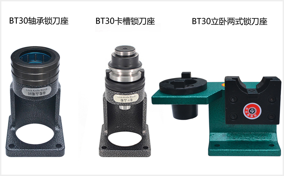 bt30鎖刀座是CNC數控機床刀柄鎖定的一種機床附件。用于拆卸bt30系列的刀柄螺帽和拉釘。常用的有三種,bt30卡槽鎖刀座,bt30軸承鎖刀座和bt30立臥兩式鎖刀座。